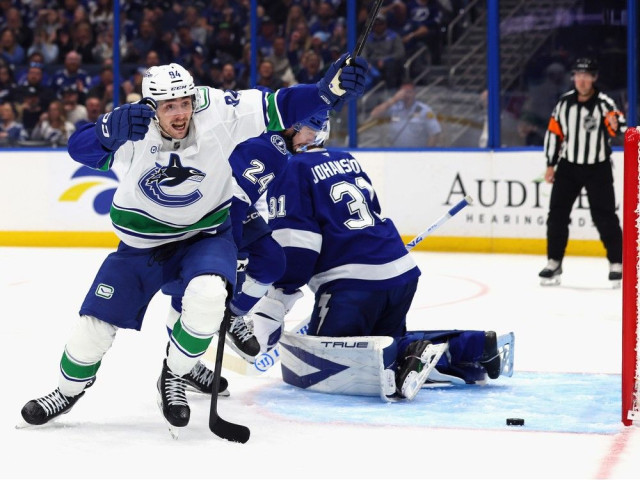 Watch as the Vancouver Canucks pounce on the Tampa Bay Lightning by scoring three goals in under two minutes to take the lead.