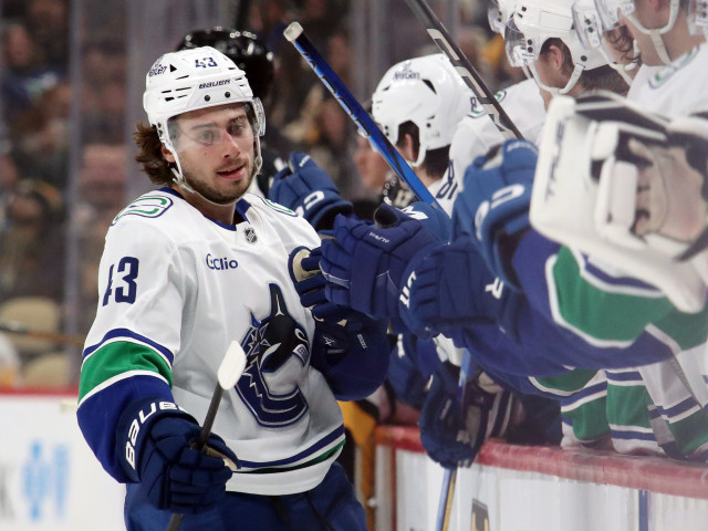 Pettersson is on pace for 23 goals and 79 points — not 100-point Petey — but a big step after 15 goals and 45 points in 2024-25