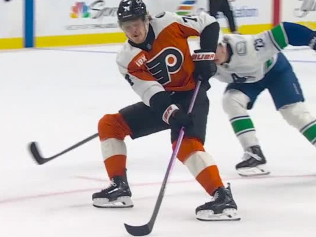 Watch as Philadelphia Flyers forward Owen Tippett puts a nasty move on Vancouver Canucks defenceman Tom Willander before roofing his opportunity on a breakaway for a beautiful goal.