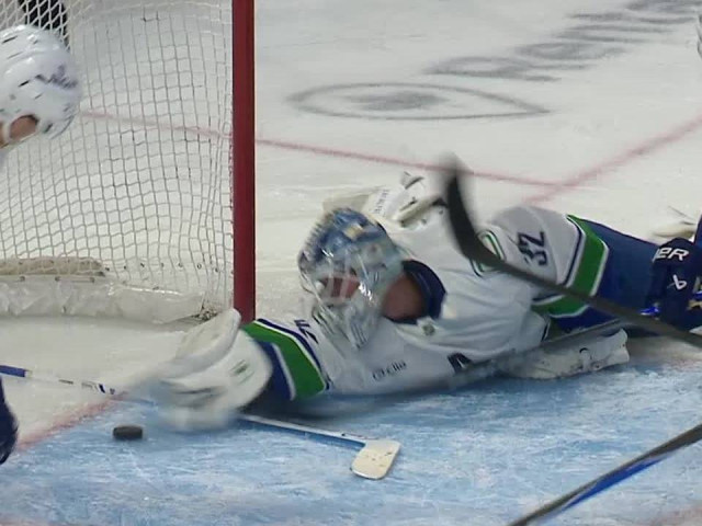 Watch as Vancouver Canucks’ Kevin Lankinen makes a crazy save using his hand while the puck is on the goal line vs. the Ottawa Senators in the second period.