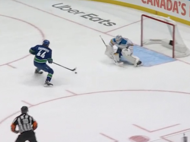 Watch as Kiefer Sherwood escapes with the puck for a Vancouver Canucks shorthanded goal against the St. Louis Blues.
