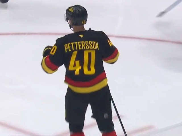Watch as Vancouver Canucks fans break out a ‘Let’s go Petey’ chant, after he delivers a one-time blast on the power play to give his team a two-goal lead over the Oilers.