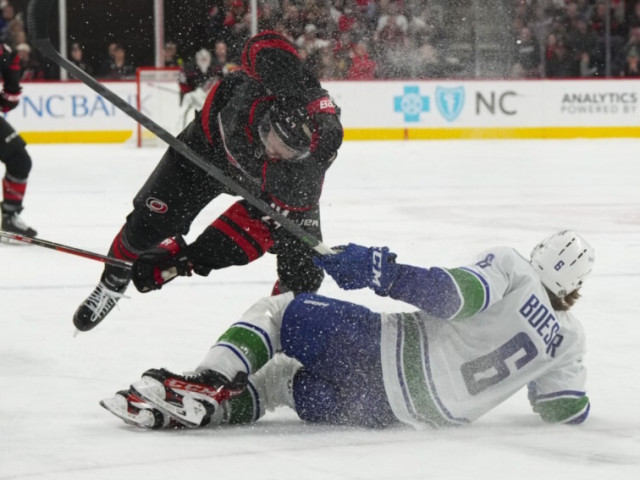 It doesn't look good for Seth Jarvis. Brock Boeser leaves 33 seconds into the first. Dylan Strome and Rasmus Sandin real close.
